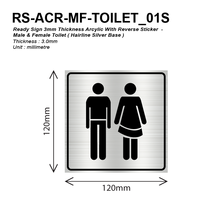 • > Ready Sign 3mm Thickness Acrylic With Reverse Sticker - Female Toilet ( Hairline Silver Base ) RS-ACR-FTOILET_01S
