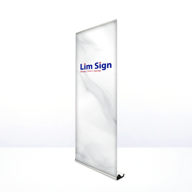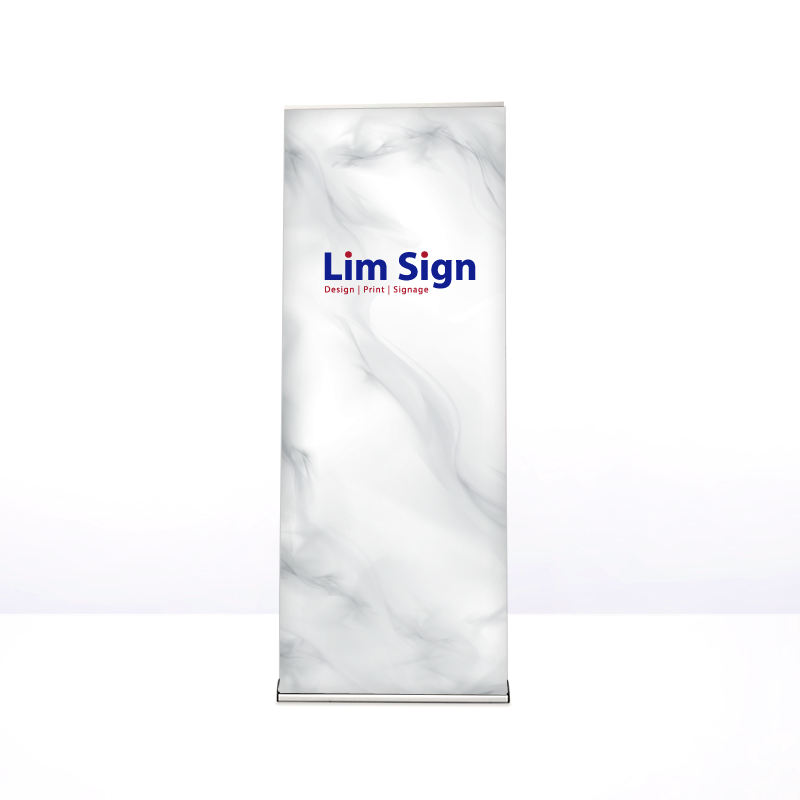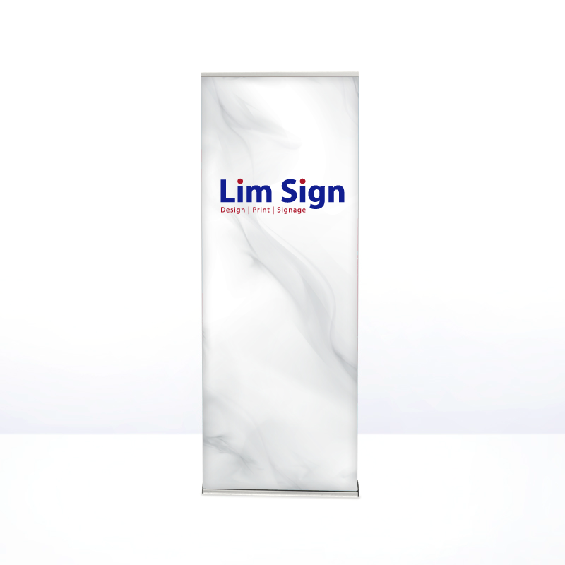 • A Whale series pull up banner (roll up banner/easy roll banner) printed on premium matte PET poster paper. It has an elegant and sleek wide base design finished in black with chrome silver side capping.